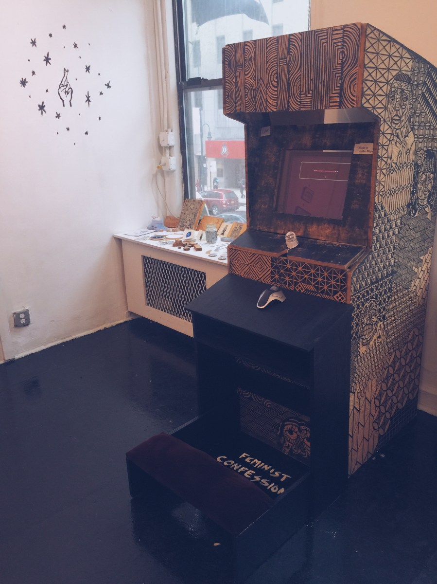 Feminist Confessional arcade cabinet with prayer bench Published May 10, 2016 at 2448 × 3264 in The Mystical Digital @ Babycastles ← Previous Next → Feminist Confessional arcade cabinet with prayer bench Like Loading...