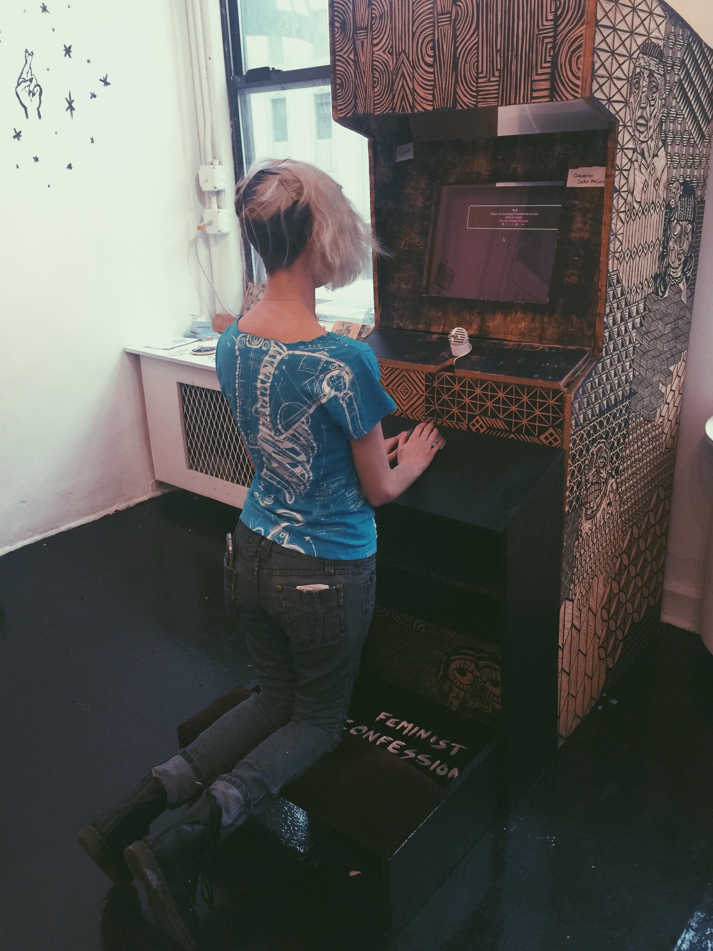 Feminist Confessional arcade cabinet with prayer bench Published May 10, 2016 at 2448 × 3264 in The Mystical Digital @ Babycastles ← Previous Next → Feminist Confessional arcade cabinet with prayer bench Like Loading...